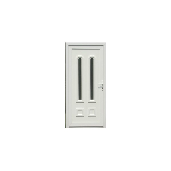 Szerkezeti felépítés: Az ajtószárnyban a sarkakon hegesztett CRP merevítés biztosítja a megbízható és hosszantartó működést! Panel: 24mm teljes vastagságú, 1,5-1,5mm vastag kétoldali Kömmerling PVC lemez borítással, extrudált poliuretán hab szigeteléssel.