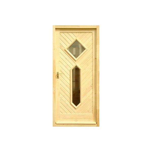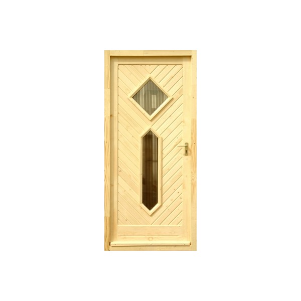 | Szerkezeti felépítés: | hossztoldott, táblásított lucfenyő, ellenprofilos, szimplafalcos kialakítással, kétoldalas lambéria betéttel, fa vízvetővel. TOK: 61 mm vastag natúr hossztoldott lucfenyő gerébtok, gumi ütközéssel |