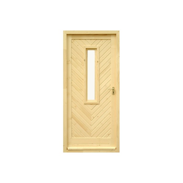 | Szerkezeti felépítés: | hossztoldott, táblásított lucfenyő, ellenprofilos, szimplafalcos kialakítással, kétoldalas lambéria betéttel, fa vízvetővel. TOK: 61 mm vastag natúr hossztoldott lucfenyő gerébtok, gumi ütközéssel |