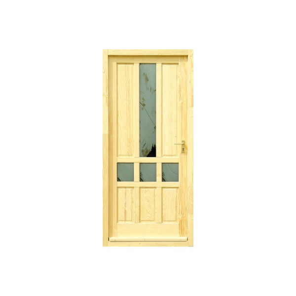| Szerkezeti felépítés: | hossztoldott, táblásított lucfenyő, ellenprofilos, szimplafalcos kialakítással, kétoldalas lambéria betéttel, fa vízvetővel. TOK: 61 mm vastag natúr hossztoldott lucfenyő gerébtok, gumi ütközéssel |